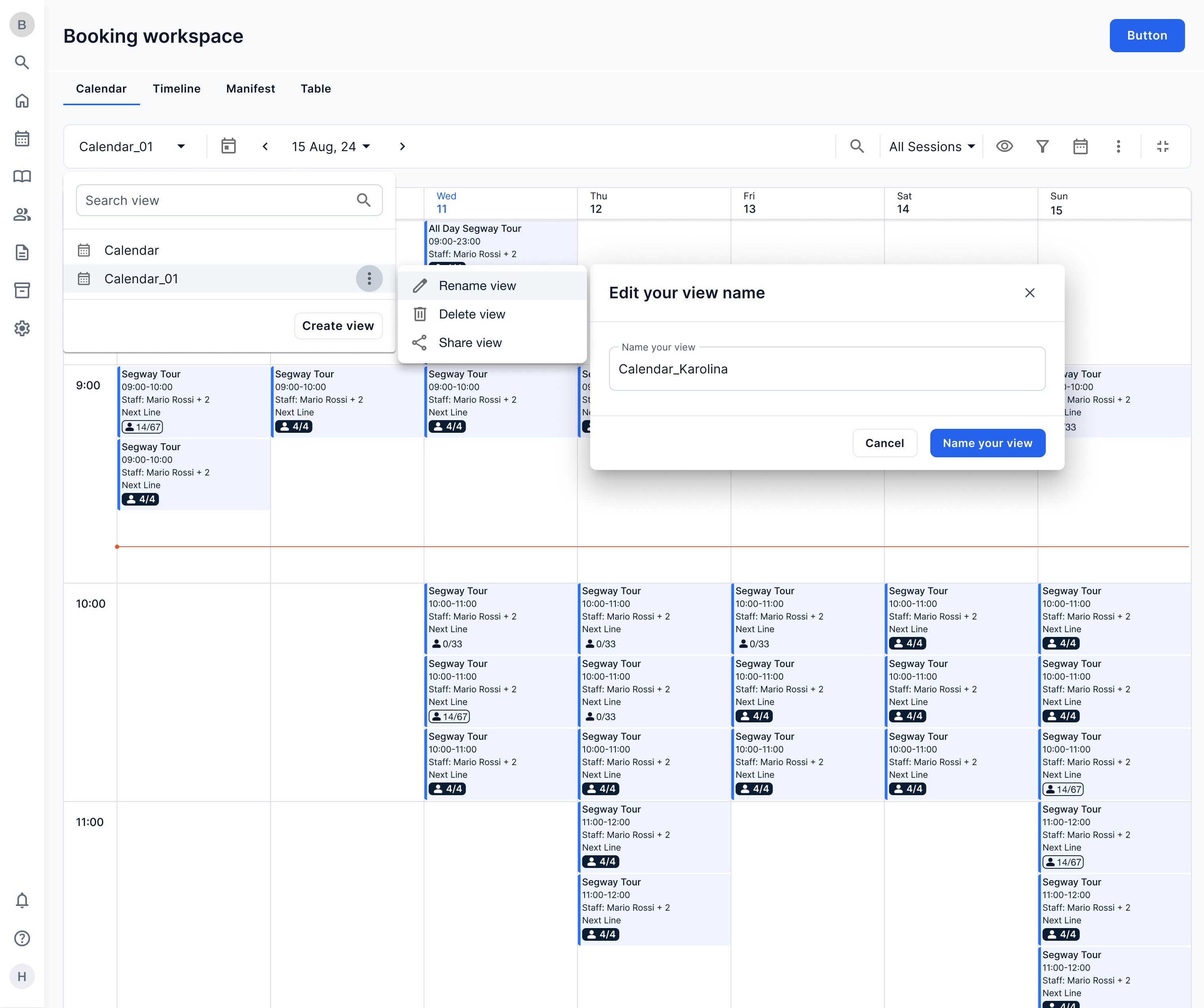 Instead of designing one "perfect" calendar, I built Views—a system where operators create perspectives matching their workflow. Museum operators filter to time slots and capacity. Tour operators filter to guides and payment status. Activity centers filter to memberships and attendance.
