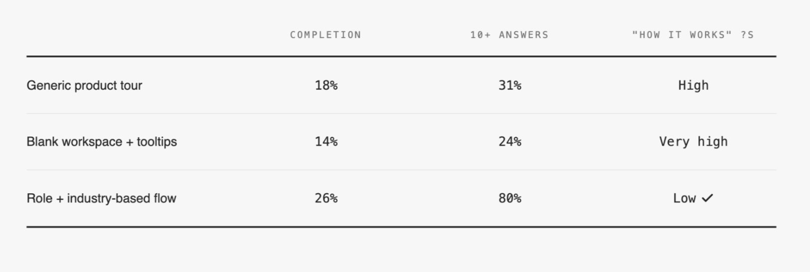 Personalized onboarding increased 10+ answer completion to 80%