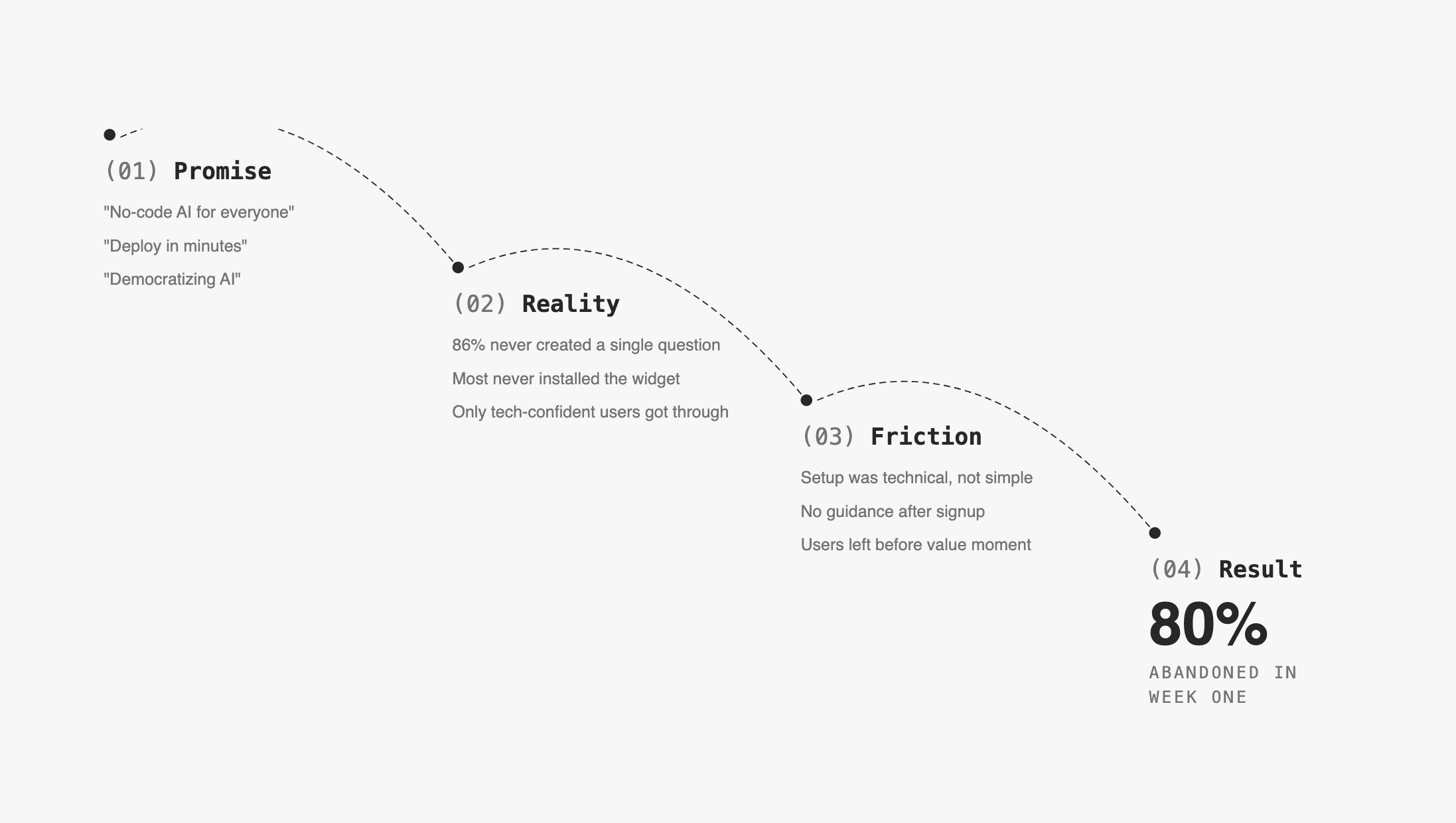 The platform promised "no-code AI for everyone" but the experience assumed technical fluency users didn't have.