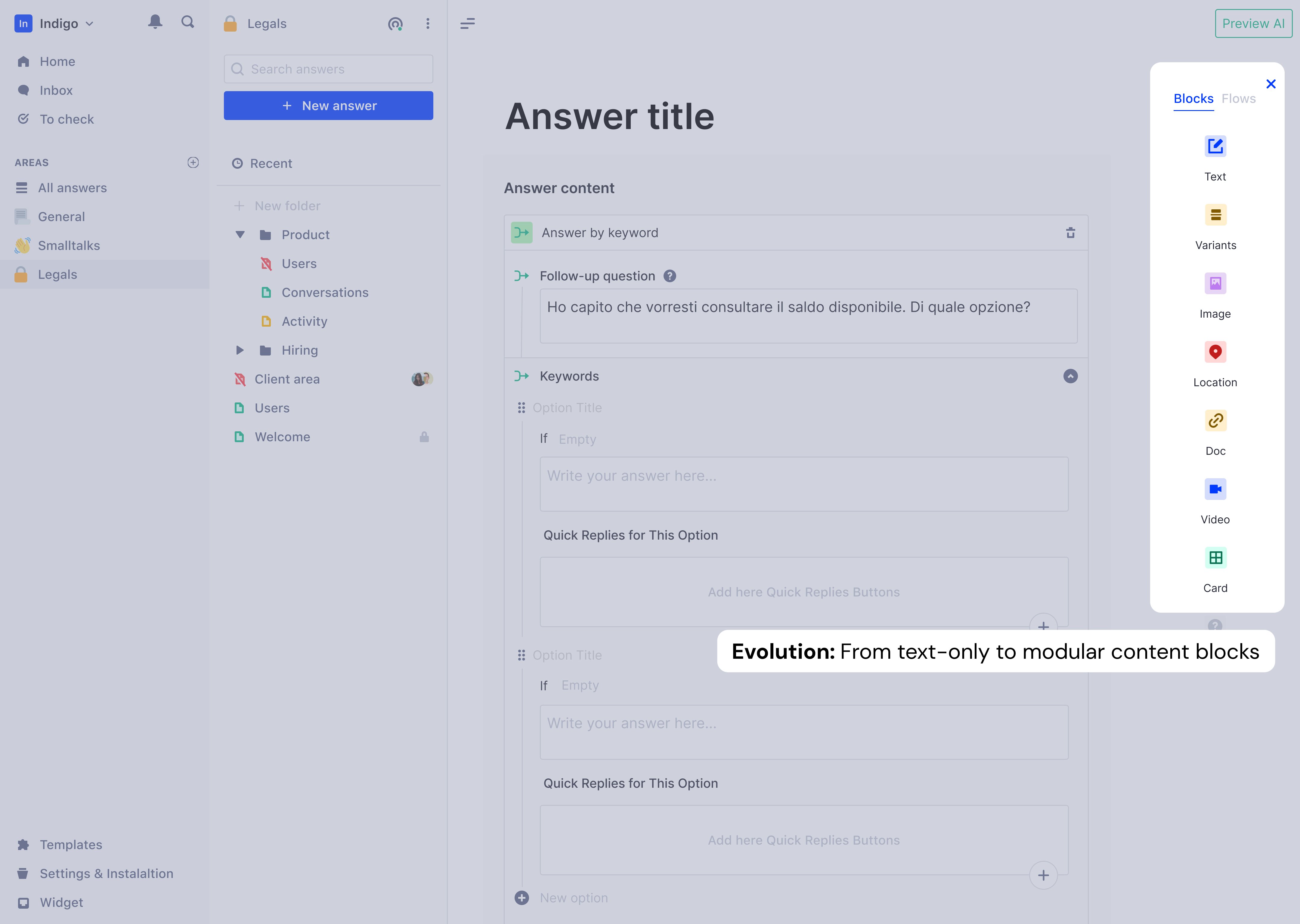 The platform transformed from FAQ storage to intelligent conversation builder.